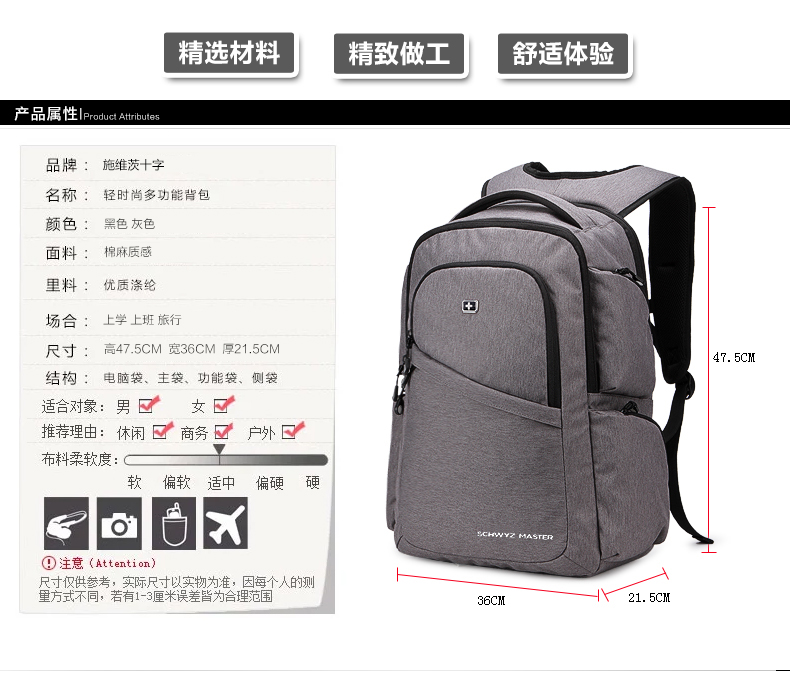 • 商品名称:施维茨十字背包男士双肩包高中学生书包女韩版旅行包休闲电脑包潮