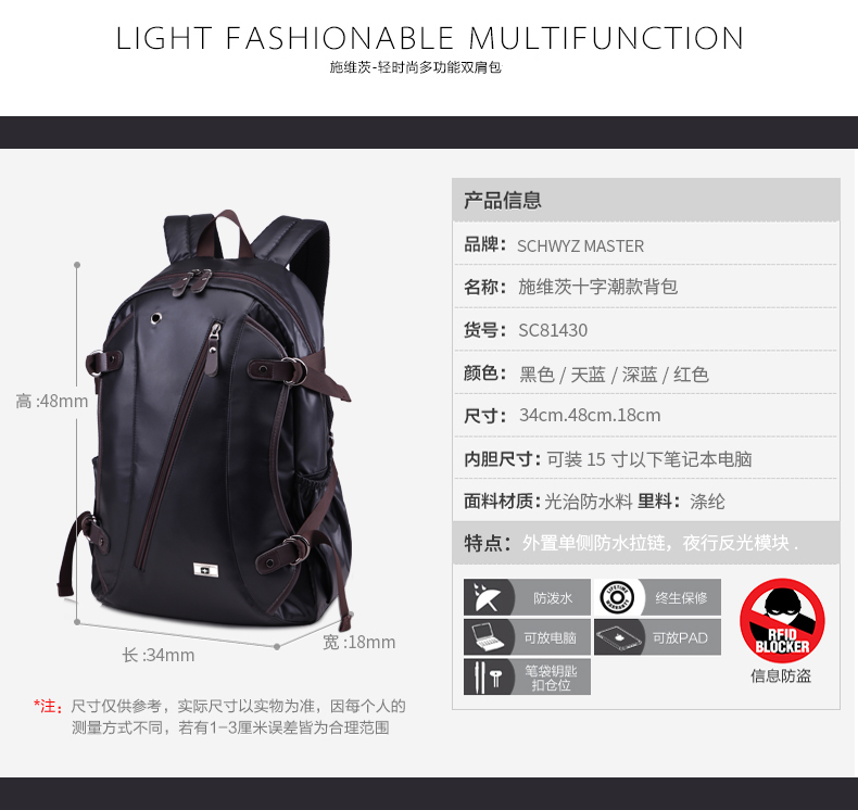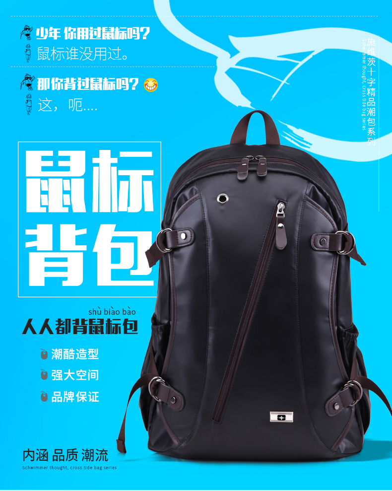 • 商品名称:施维茨十字时尚背包男士双肩包女韩版中学生书包旅行包商务电脑包