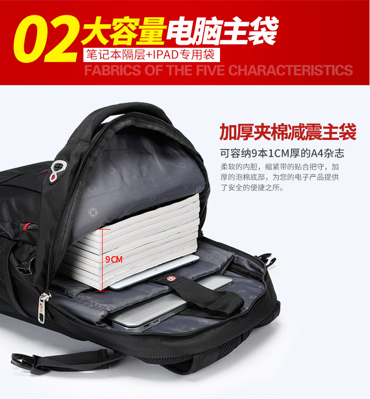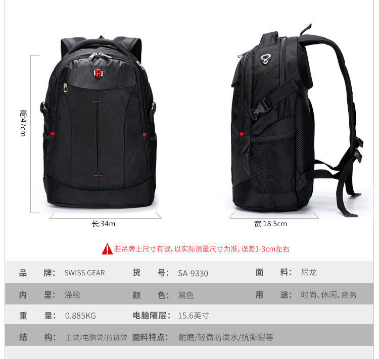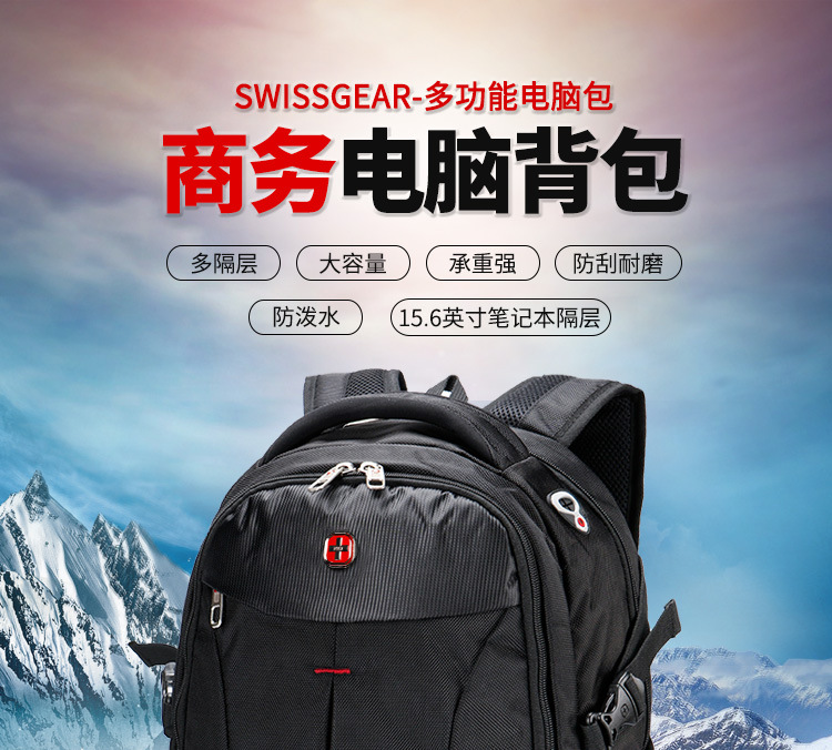 • 商品名称:SWISSGEAR瑞士军刀户外背包休闲双肩包15寸黑色电脑包 SA-9330
