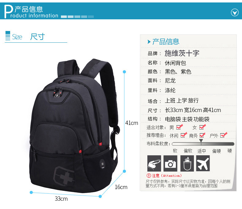 • 商品名称:施维茨十字高中学生书包双肩包男士背包女韩版旅行包休闲电脑包潮