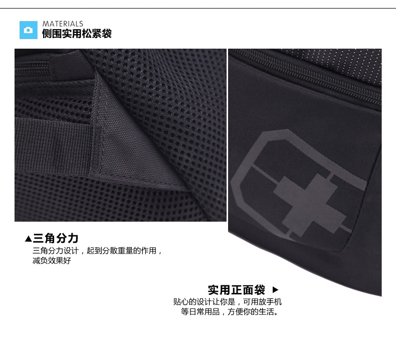 • 内部结构:拉链暗袋 手机袋 证件袋 夹层拉链袋 电脑插袋 相机插袋